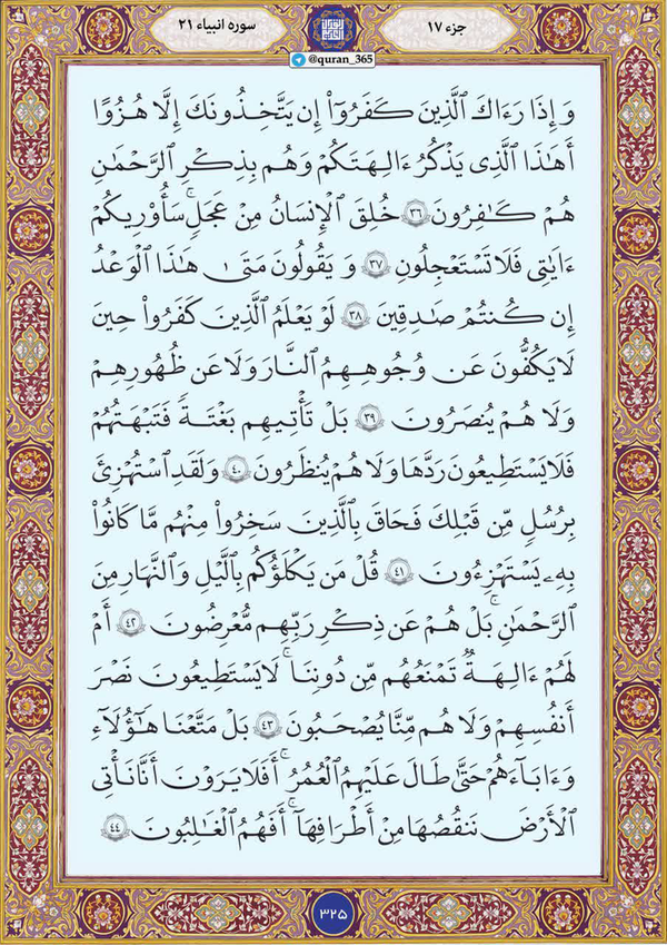 یادآوری نابودی امتهای پیشین؛ درسی برای دشمنشناسیدر آیه ۴۳ و ۴۴ مثالهایی از امتهای پیشین آورده میشود؛ اقوامی که گمان میکردند با ثروت و ساختارهای اجتماعی خود بر حق چیره میشوند، اما ناگهان نابود شدند. قرآن تأکید میکند که آنان در سرزمینها راه میرفتند و نشانههای تمدنهای زوالیافته را میدیدند، اما از آن پند نمیگرفتند.این بخش نشان میدهد که دشمنشناسی بدون توجه به تاریخ ناقص است. قرآن با یادآوری سرنوشت دشمنان حق در گذشته، به مخاطبان میآموزد که رفتارهای کنونی کفار نیز همان الگو را دنبال میکند و پایانشان نیز مانند گذشتگان خواهد بود.ویژگیهای دشمن از نگاه سوره انبیاءاین آیات مجموعهای از ویژگیهای دشمنان حقیقت را ترسیم میکند:استفاده از تمسخر و تخریب شخصیتبیاعتقادی به آخرت و انکار حسابرسیچالشطلبی و مطالبهگری نادرست برای آوردن عذابغرور و احساس امنیت کاذبغفلت از سنتهای الهی و درسهای تاریخمقاومت در برابر حق به دلیل منافع، غرور و جهلبر اساس این آیات، قرآن به مؤمنان میآموزد که دشمنان حق همیشه از یک الگوی رفتاری مشابه پیروی میکنند و شناخت این ویژگیها برای استقامت در مسیر الهی ضروری است. همچنین یادآوری میکند که پیروزی نهایی از آنِ حق است، هرچند دشمنان در ظاهر قدرتمند و مسلط به نظر برسند.تلاوت این آیات را که در صفحه ۳۲۵ قرآن کریم واقع است، ببینید و بشنوید.
