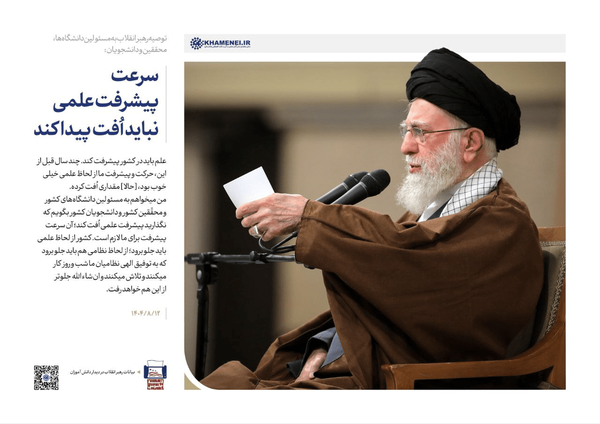 روحیه «ما میتوانیم»؛ بزرگترین دستاورد تحریمرهبر انقلاب در نوروز ۱۳۹۵، به بُعد فرهنگی تحریم اشاره میکنند: «یکی از سنگرهای دشمن در ایران، ناباوری ملّت به خود بود، و یکی از سنگرهای بزرگ پیروزی ملّت و جوانان ملّت، باور به خود و روحیهی «ما میتوانیم» است. این هم یکی از سنگرهای دشمن بود.» (۱۳۹۵/۰۱/۰۱)تحریمها، با بستن راههای خارجی، مسیرهای بومی را فعال کردند؛ و این تحول پیروزی فرهنگی و تمدنی جمهوری اسلامی است.هشدار و جمعبندی نهایی رهبر انقلاب: حفظ شتاب علمیبا وجود همه پیشرفتها، رهبر انقلاب در آخرین دیدار با دانشآموزان هشدار میدهند: «علم باید در کشور پیشرفت کند. چند سال قبل، حرکت و پیشرفت علمی ما خیلی خوب بود اما قدری افت کرده است؛ مسئولان دانشگاهها، محققان و دانشجویان نباید بگذارند سرعت علمی کشور افت کند.» (۱۴۰۴/۰۸/۱۲)این بیان نشان میدهد که نگاه راهبردی جمهوری اسلامی، تثبیت و گسترش این پیشرفتهاست؛ نه اکتفا به دستاوردهای موجود.در جهانی که رقابت قدرتها بر محور فناوریهای نوین، از هوش مصنوعی و بیوتکنولوژی تا انرژیهای پیشرفته و علوم کوانتومی، متمرکز شده است، هرگونه کاهش سرعت علمی، در واقع کاهش قدرت ملی است.این بیان یعنی ایران نمیتواند به دستاوردهای گذشته تکیه کند؛ زیرا فضای علمی جهان بهگونهای است که هر توقفی معادل عقبماندگی است.
