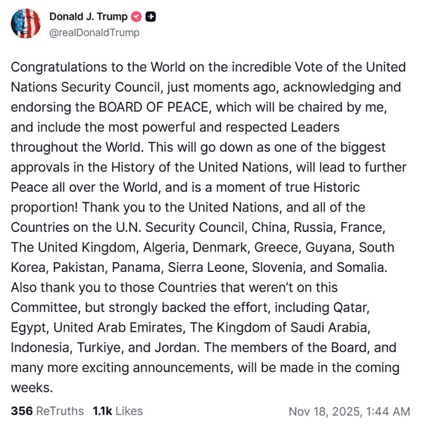 گروه بینالملل خبرگزاری فارس؛ «دونالد ترامپ» رئیس جمهور آمریکا بامداد سهشنبه از تصویب قطعنامه پیشنهادی واشنگتن برای ایجاد نیروی بینالمللی در نوار غزه توسط شورای امنیت سازمان ملل متحد، استقبال کرد.ترامپ طی بیانیهای در صفحه شخصی خود در شبکه اجتماعی «تروث سوشال» نوشت: «من به جهانیان بهخاطر رأی باورنکردنی شورای امنیت که منجر به تأسیس شورای صلح در غزه شد و من ریاست آن را بر عهده خواهم داشت، تبریک میگویم».وی در این بیانیه مدعی شد: «این قطعنامه شورای امنیت یکی از بزرگترین اتفاق نظرها در تاریخ سازمان ملل است و منجر به صلح بیشتر در سراسر جهان خواهد شد».رئیس جمهور آمریکا در ادامه ادعاهای خود گفت: «این یک لحظه واقعاً تاریخی است. از سازمان ملل و همه کشورهای عضو شورای امنیت متشکرم».ترامپ همچنین افزود: «اعضای شورای صلح در غزه و سایر جزئیات در هفتههای آینده اعلام خواهد شد».#شورای_امنیت#غزه#آمریکا#ترامپ«با دنبال کردن صفحه بینالملل فارس درجریان آخرین تحولات جهان قرار بگیرید»