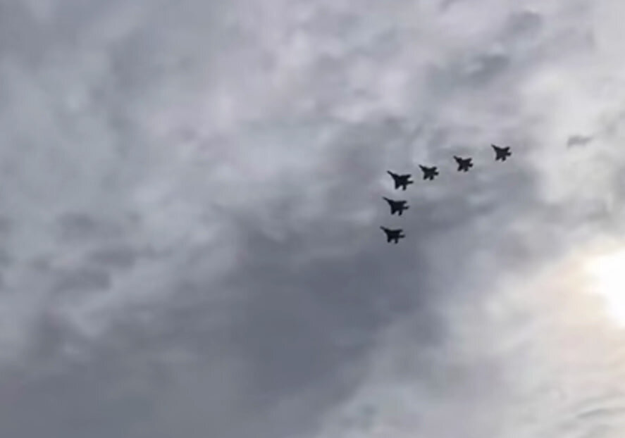 تصاویری از پرواز جنگندههای اف-۳۵ و اف-۲۲ آمریکا بر فراز کاخ سفید به عنوان بخشی از مراسم استقبال از محمد بن سلمان، ولیعهد عربستان سعودی را مشاهده میکنید.