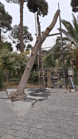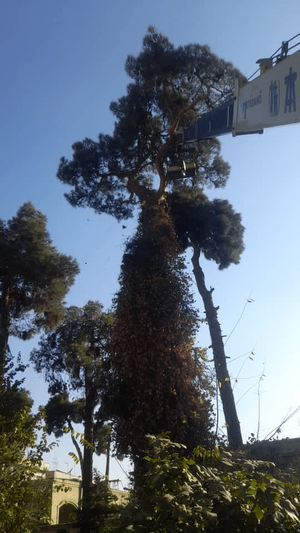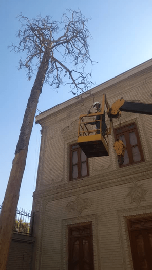 مشاهدات میدانی نشان داد که در موزه آبگینه درختی زنده قطع نشده بلکه تمامی درختان قدیمی آن هرس شده است.