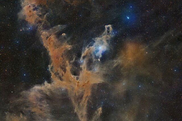 به گزارش ایسنا، گاهی اوقات غبار تاریک فضای میانستارهای، ظرافت زاویهای دارد. چنین چیزی در صورت فلکی جنوبی و دوردست «آفتابپرست»(Chamaeleon) صدق میکند.