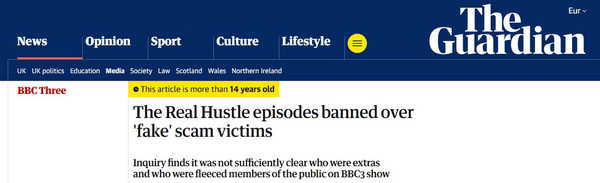 شبکه بیبیسی سریالی با عنوان «حقهبازی واقعی» در سال 2006 منتشر کرد که موضوع آن، آگاهی بخشی به مردم در موضوع کلاهبرداری بود. بیبیسی مدعی بود که در این برنامه، اشخاصی حضور داشتند که مردم عادی هستند و از آنها کلاهبرداری شده است. اما در سال 2011 مشخص شد که برخی از این افراد، بازیگرانی بودند که بیبیسی به آنها پول داده بود تا نقش قربانی را بازی کنند.
