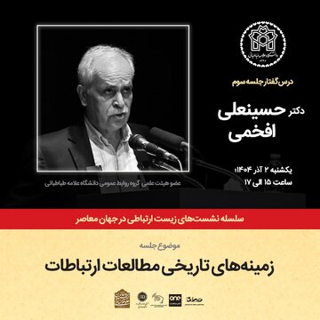 به گزارش خبرگزاری خبرآنلاین، به نقل از روابط عمومی خانه اندیشمندان علوم انسانی، در نشست سوم با موضوع زمینه های تاریخی مطالعات ارتباطات، دکتر حسینعلی افخمی سخنرانی خواهد کرد.