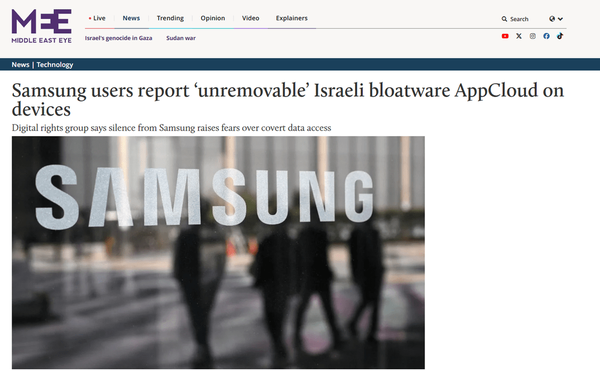 میدلایست در گزارشی نوشت سامسونگ یک نرمافزار اسرائیلی را بهصورت پیشفرض روی گوشیهای کاربران نصب کرده است.