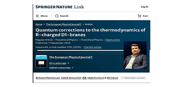 در آبانماه ۱۴۰۴، پژوهشی توسط دانشمندان ایرانی در یکی از معتبرترین مجلات علمی جهان یعنی نشریه فیزیک اروپایی بخش فیزیک نظری منتشر شد و بازتاب گستردهای در جامعه علمی جهان پیدا کرد.