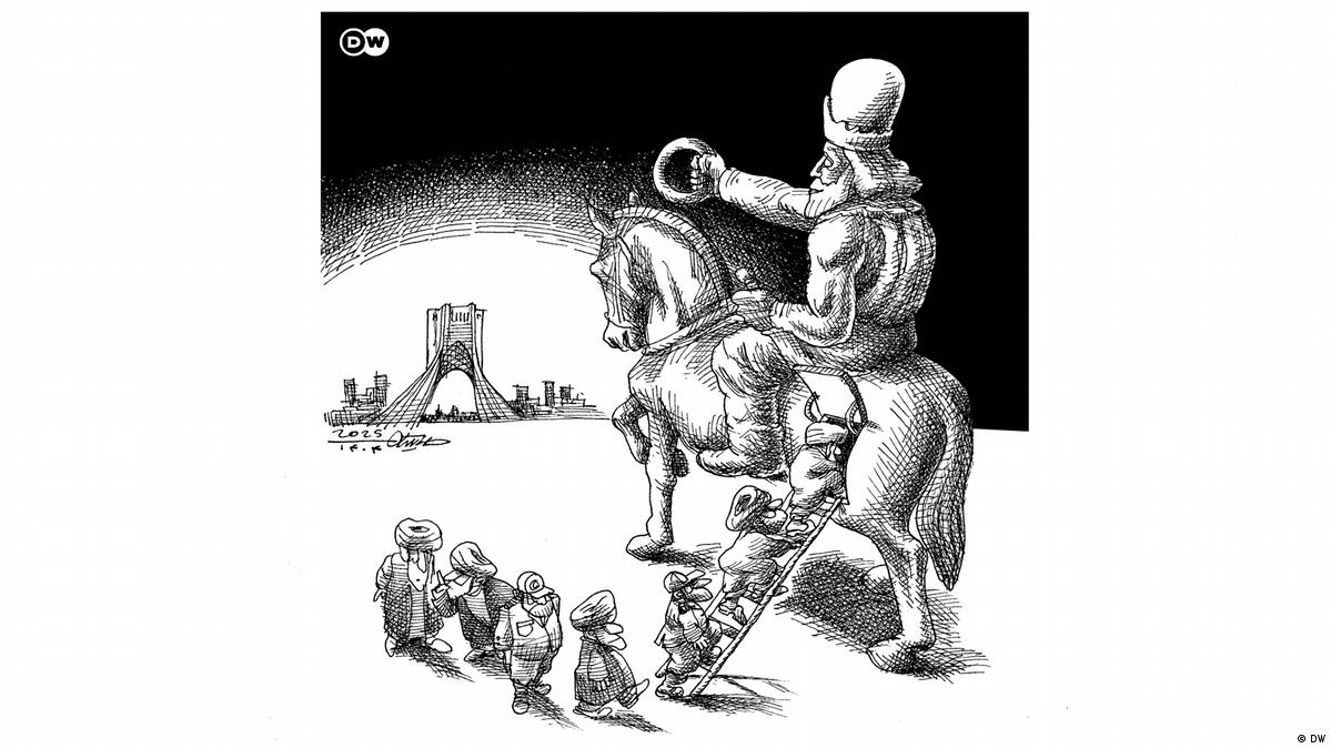 نصب مجسمه منتسب به شاپور اول که والرین رومی در برابرش زانو زده یکی از تازهترین رویکردهای ناگهانی حکومت پس از جنگ دوازده روزه به نمادهای ملی تاریخی است که دهه ها با آن عناد ورزیده بود. پس از رونمایی مجسمه شکست والرین در میدان انقلاب تهران و برگزاری ویژهبرنامه «در برابر ایران زانو میزنید» نقدهایی در این باره که فرد زانو زده در نقشبرجستههای باقی مانده در استان فارس اساسا فیلیپ عرب است نه والرین رومی مطرح شد. اما سوال اساسیتر منتقدان این است که کدام سیاست مبنایی جمهوری اسلامی نسبت به ایران، ایرانی و هویت او تغییر معناداری کرده که چنین رویکردهای ناگهانی حکومت ترفند تازهای برای همدل کردن مردم دلزده و ناراضی از فشار سیاسی و اقتصادی تلقی نشود. کاریکاتور این هفته مانا نیستانی برای دویچه وله به این موضوع اختصاص یافته است.