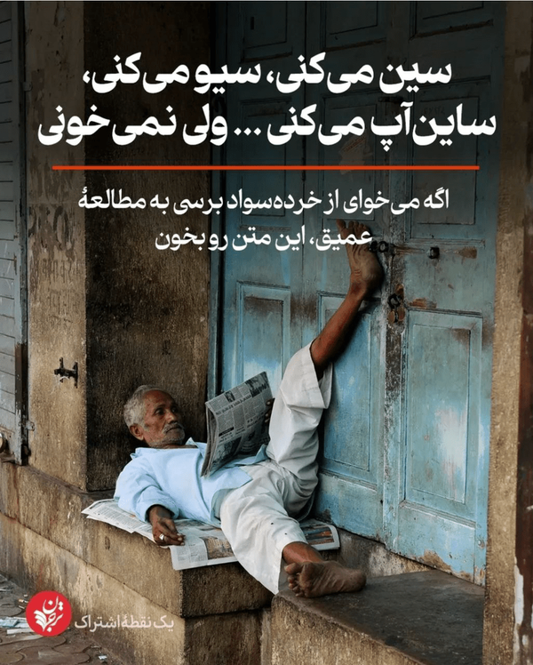پلتفرمها با همه مزیتهایشان یک جور دانش فستفودی ساختهاند؛ کوتاه، جذاب و مصرفی. برای اینکه وقت بیشتری را در آنها بگذرانیم طوری طراحی شدهاند که مدام محتوای کوتاه و جذاب جلوی چشممان بگذارند. این روند کمکم تمرکزمان را میگیرد و کاری میکند که دیگر به راحتی سراغ متنهای بلند و محتوای جدی نرویم. از جایی به بعد هم آدم خیال میکند دیدن چند پست و یکیدو ویدئوی آموزشی یا پادکست همان کاری را میکند که قبلاً کتاب و مجله میکرد، در حالی که اینها در بهترین حالت فقط شروع کارند.