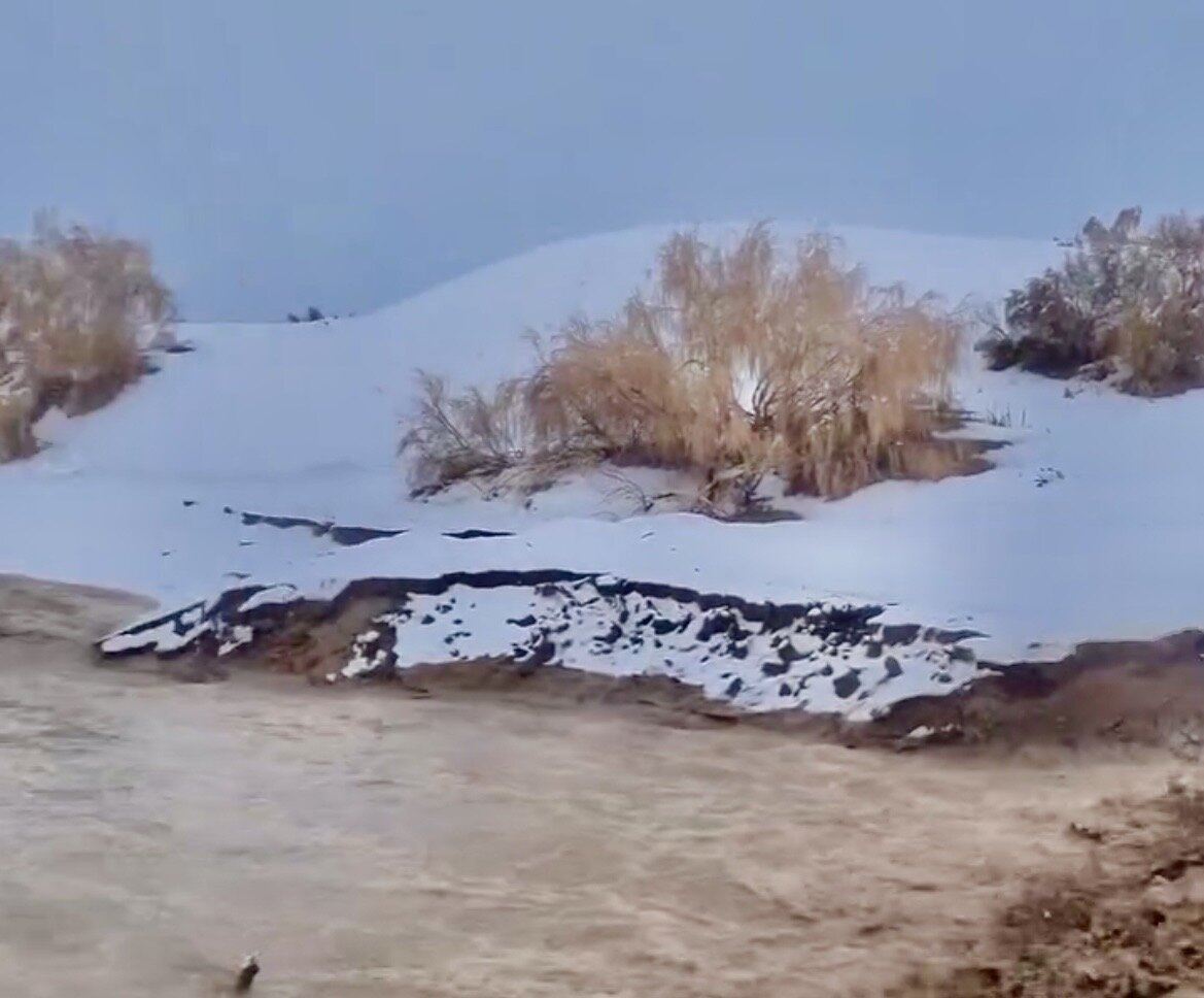 تصاویری از پدیده نادر و کمیاب بارش برف و راه افتادن سیلاب به شکل همزمان در کویر مصر منتشر شده است