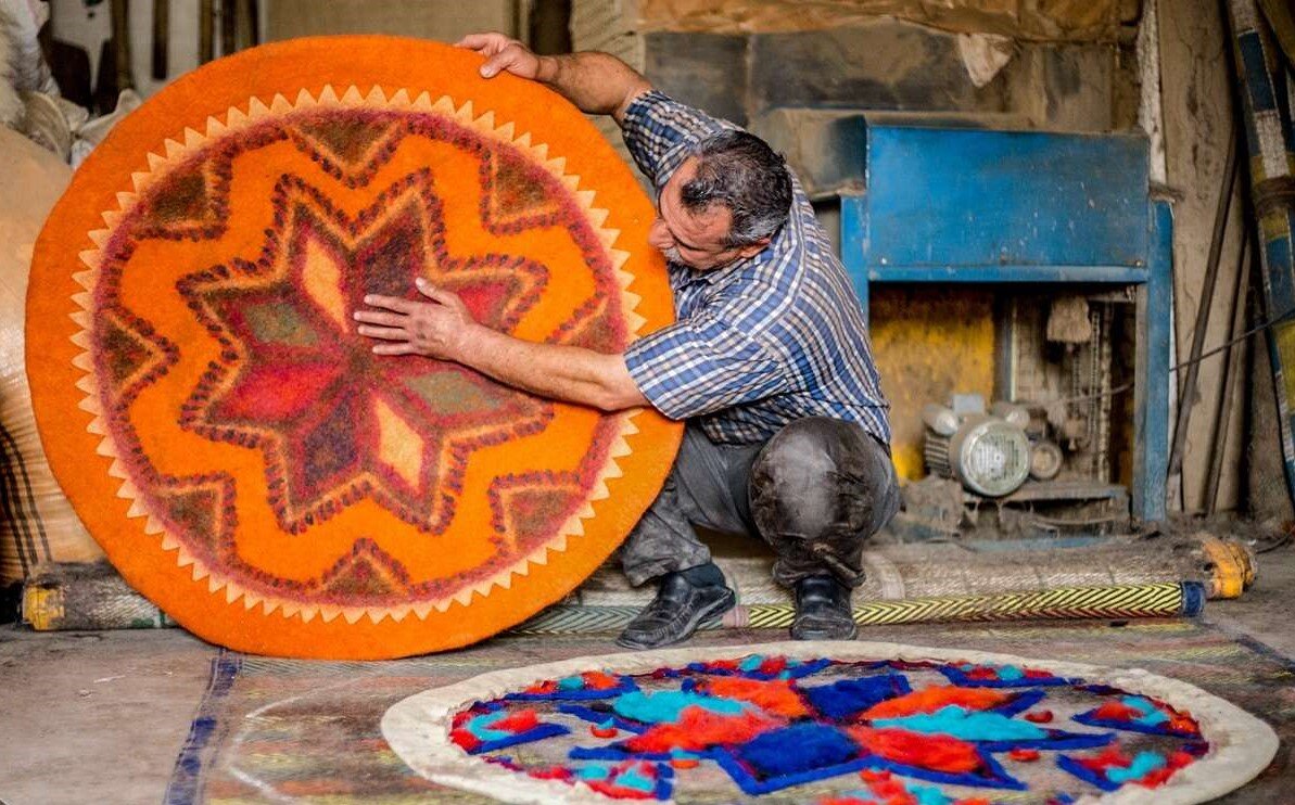او ادامه میدهد: «آن زمان در محله ما حدود ۵۰ خانه مشغول نمدمالی بودند و کارها بیشتر در خانه انجام میشد.»