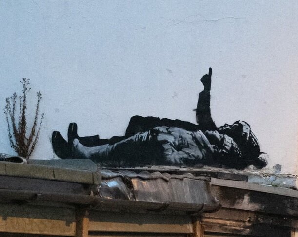 «گاردین» نوشت، در این اثر، دو کودک روی زمین دراز کشیدهاند و به آسمان اشاره میکنند و «بنکسی» آن را روی دیواری کوتاه بالای گاراژهای واقع در منطقه «بیواتر» خلق کرده است.