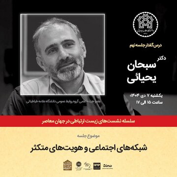 به گزارش خبرگزاری خبرآنلاین به نقل از روابط عمومی خانه اندیشمندان علوم انسانی، در نشست «شبکه های اجتماعی و هویت متکثر»، دکتر سبحان یحیایی عضو هیات علمی گروه روابط عمومی دانشگاه علامه طباطبایی سخنرانی خواهد کرد.