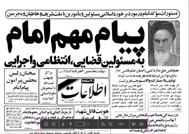 در تاریخ ۲۶ دیماه در صفحه چهارم روزنامه اطلاعات، وزیر کشور طی مصاحبهای در کرمان اعلام کرد: نتایج شکایات واصله به ستاد پیگیری فرامین امام، پس از بررسیهای لازم به اطلاع عموم خواهد رسید.