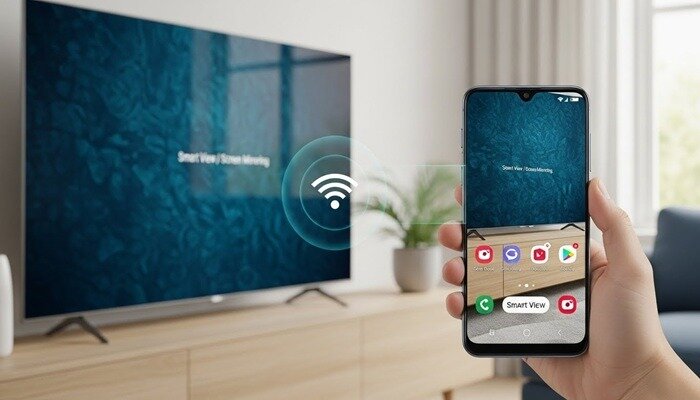 Smart View روشی برای آینهکردن (Mirroring) صفحهنمایش گوشی شما روی تلویزیون از طریق وایفای است. با این قابلیت میتوانید عکسها، ویدیوها، ارائهها و بازیهای مورد علاقهتان را روی صفحهای بزرگتر مشاهده کنید.