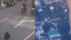 مردی که در ویدیو دیده میشود، وسط خیابان نشسته است، سرش را پایین انداخته و کاپشنش را روی سرش میکشد. حدود ۲۷ نیروی یگان ویژه بر ترک موتور یا ایستاده مقابل او دیده میشوند.