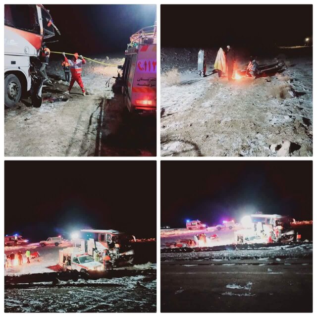 بامداد امروز چهارشنبه ۱۰ دی برخورد اتوبوس مسافربری با کامیون در کیلومتر ۱۷ محور سربیشه نهبندان ۱۵مصدوم برجای گذاشت که حال دو نفر وخیم اعلام شده است.
