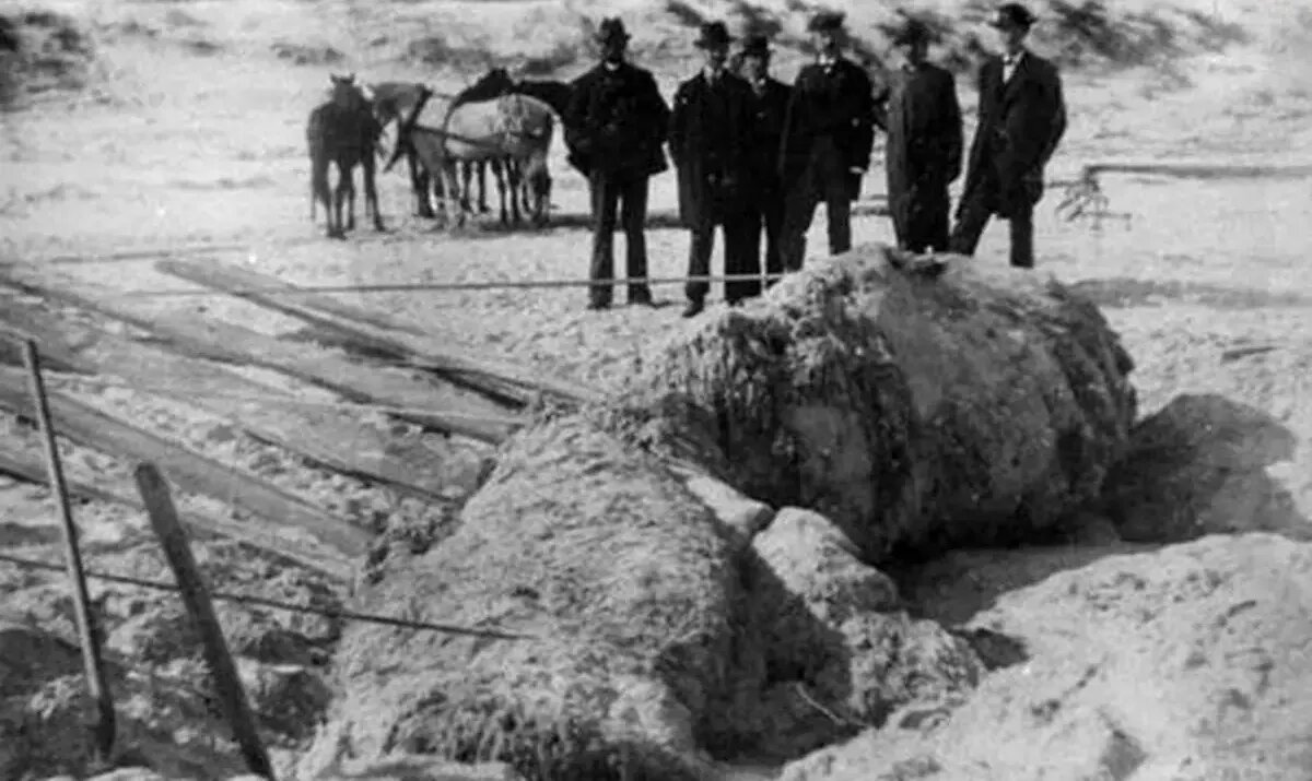 تصور کنید در دهه ۱۸۹۰ میلادی در حال قدم زدن کنار ساحل هستید که ناگهان با تودهای عظیم، ژلهای و بیشکل روبهرو میشوید؛ جرمی به طول ۵٫۵ متر و عرض بیش از ۲ متر. چیزی شبیه یک جانور مرموز غولپیکر.