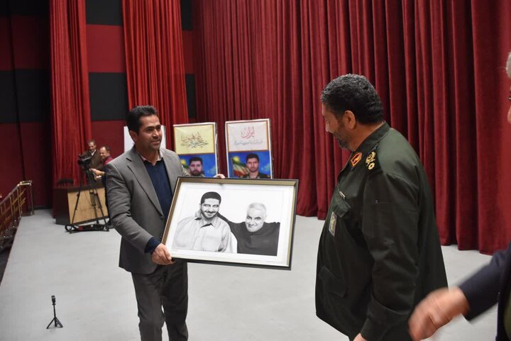 در بخش پایانی مراسم، پرترهای از شهید حاج قاسم سلیمانی که توسط حدیث سیدگنجی، هنرمند سنندجی طراحی شده بود، توسط رئیس حوزه هنری استان کردستان به سردار چهارباغی اهدا شد.